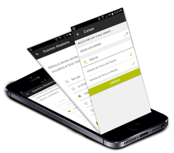 Aprende practicando de una manera fácil, desde tu smartphone o tu computadora. Practica el curso y tema que estudias de la manera más divertida con el simulacro de examen de admisión de tu preferencia.